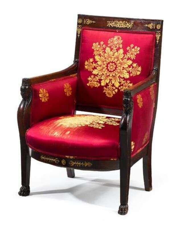 Empire gilt bronze mounted mahogany armchair circa 1820