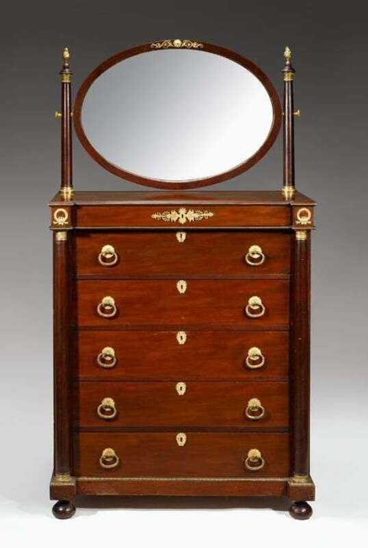Empire gilt bronze mounted mahogany tall commode