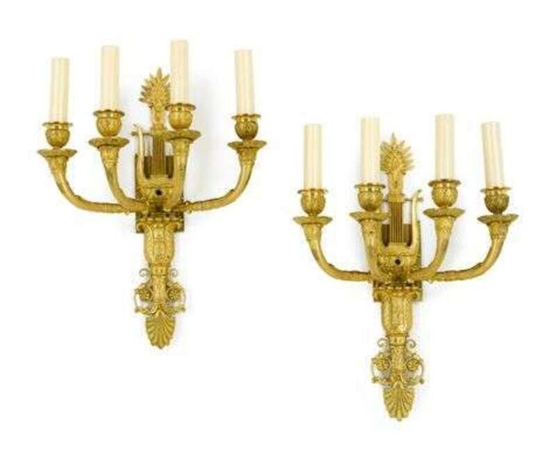 Pair of Neoclassical style gilt bronze four-arm wall sconces