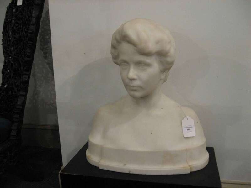 Solid single section, good true white hue showing bust of young woman, faceted plinth base.