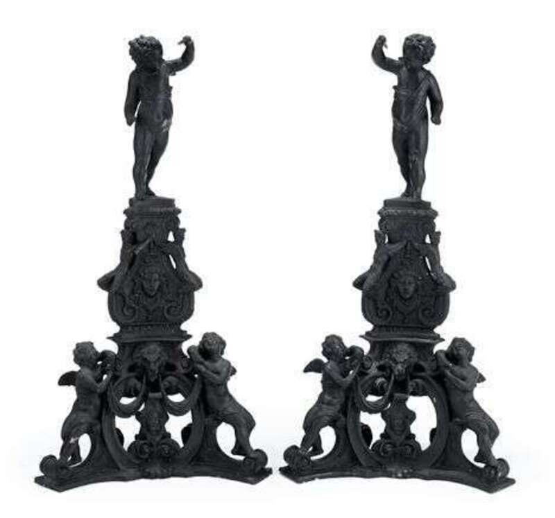 Pair of large Continental bronze andirons late 19th century