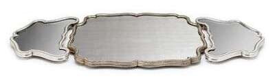Comprising a large shaped rectangular plateau and two small shaped plateaus with reeded edges, raised on bun feet. (3).