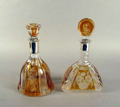 Each with tinted amber glass and etched foliate decoration, the silver mounts stamped '800'. (2).