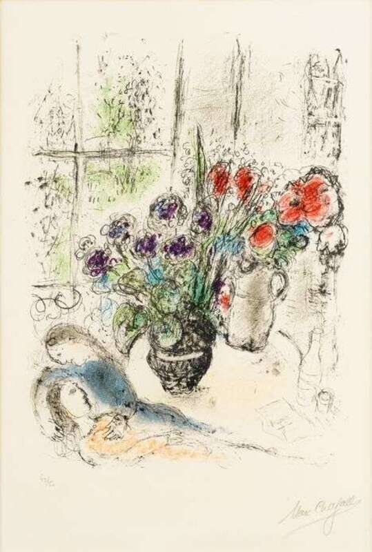 MARC CHAGALL (RUSSIAN/FRENCH, 1887-1985) "BOUQUET AUX AMOUREUX"