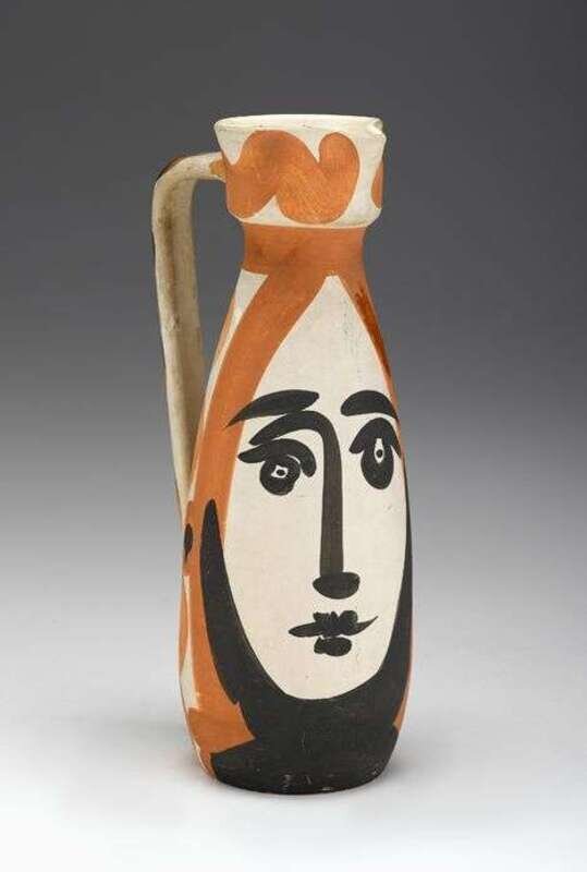Terre de faience pitcher with glazed interior, the exterior painted in black and brown, inscribed 'Edition Picasso' and with the 'EDITION PICASSO' and 'MADOURA' pottery stamps on the underside, from the edition of 500