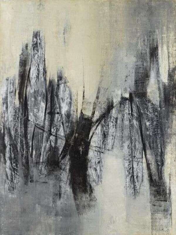 Inscribed 'K. KHANNA "ON THE FRINGE" 1962', with additional illegible inscription on the stretcher, oil on canvas