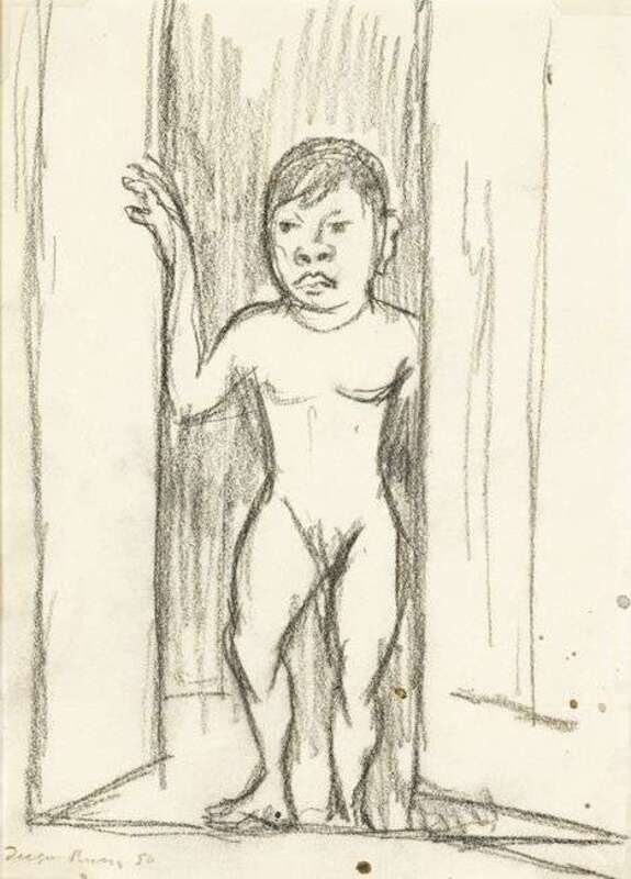 Signed and dated 'Diego Rivera 50' bottom left, charcoal on paper