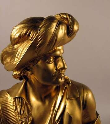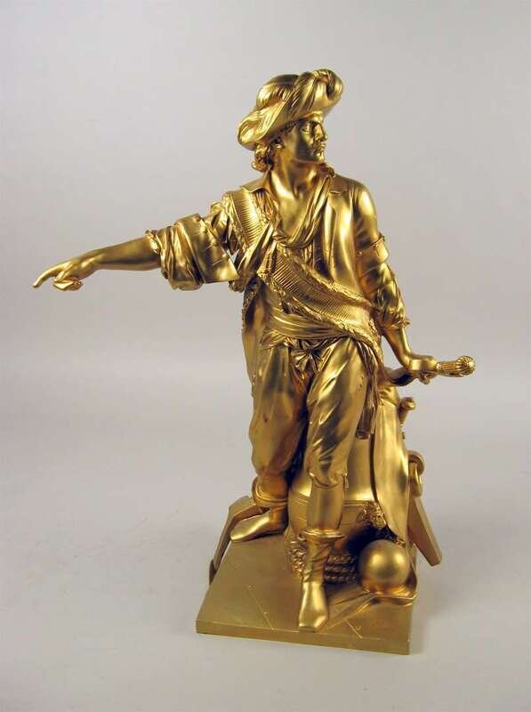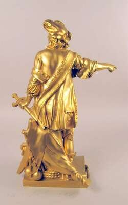 Sprayed gold, in 17th century dress standing beside an anchor, unmarked.