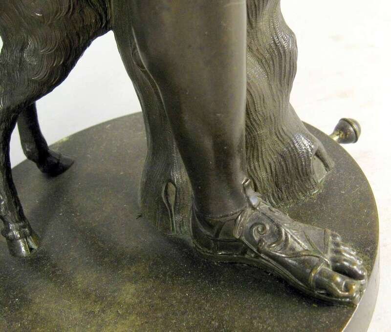 Dark brown patina, on a circular marble base, inscribed 'A Messina Roma'.