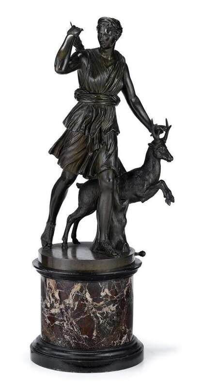 Bronze figure after the antique diana chasseresse