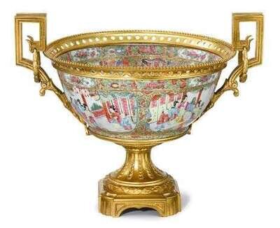 Gilt bronze mounted Famille Rose porcelain bowl