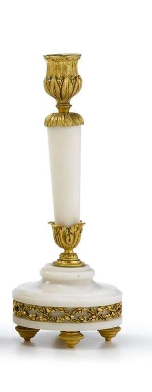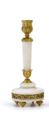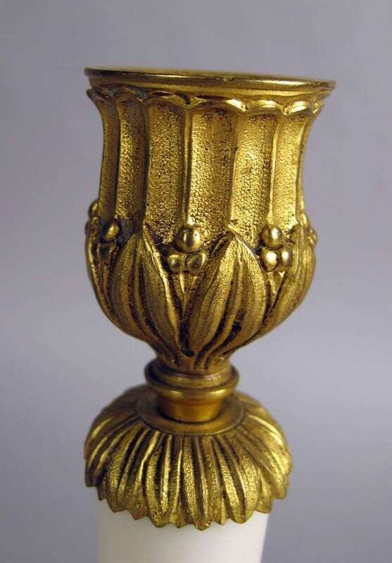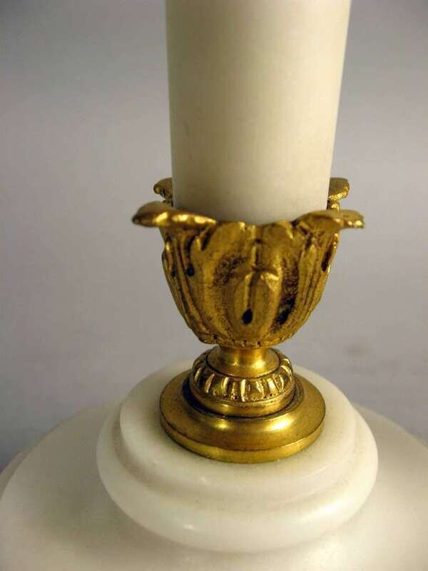 Pair of gilt bronze mounted white marble candlesticks