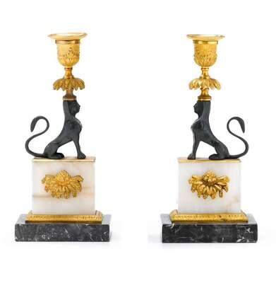 Pair of Regency style gilt & patinated metal candlesticks