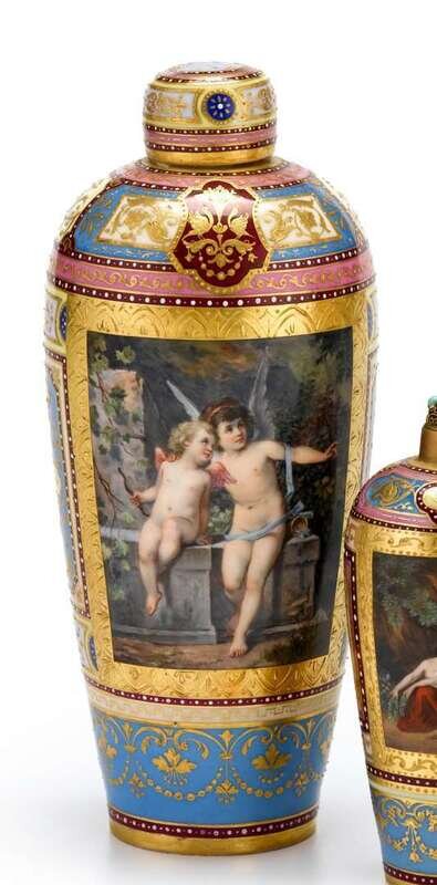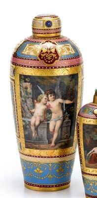 Vienna porcelain and 'jeweled' covered jar late 19th/ early 20th century