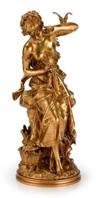 French gilt bronze figure of a girl with a bird