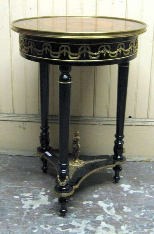 Ebonized and marquetry gueridon
