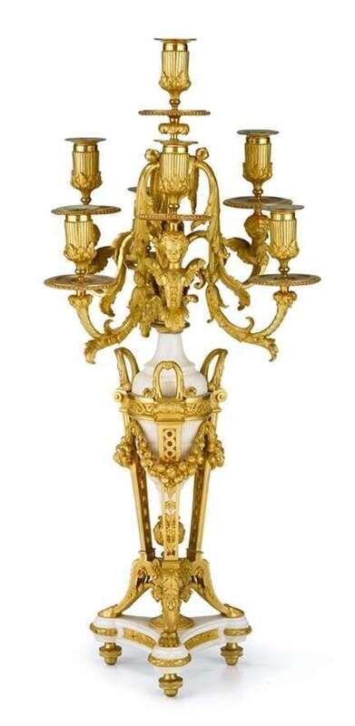 Louis XVI style gilt bronze mounted seven-light candelabrum 19th century