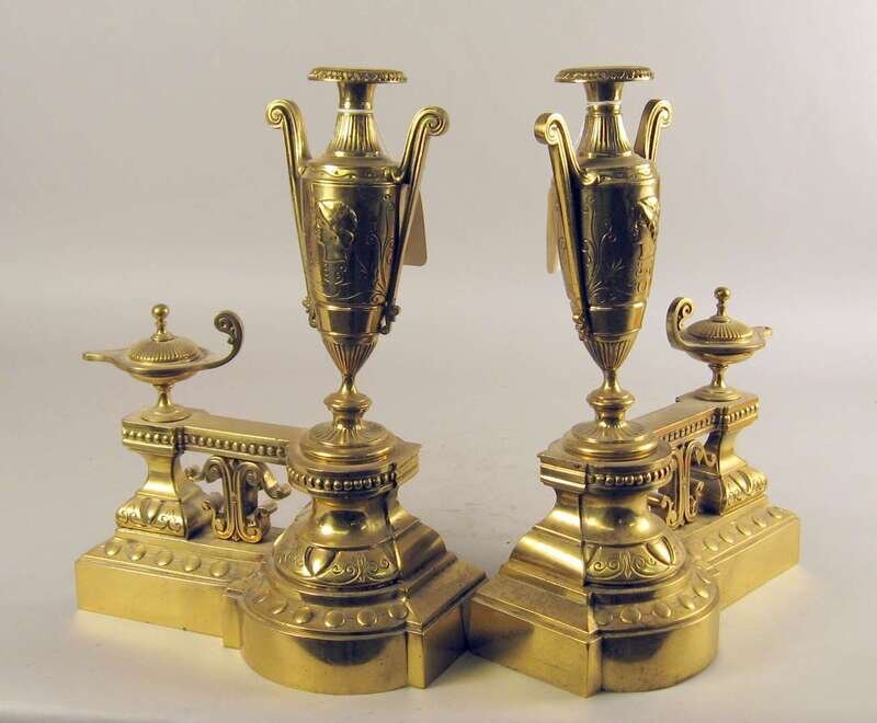 Pair of neoclassical style brass chenets