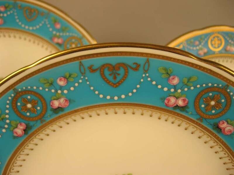 Four Mintons 'jeweled' cabinet plates retailed by caldwell & co.
