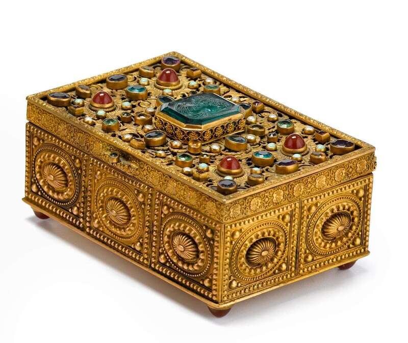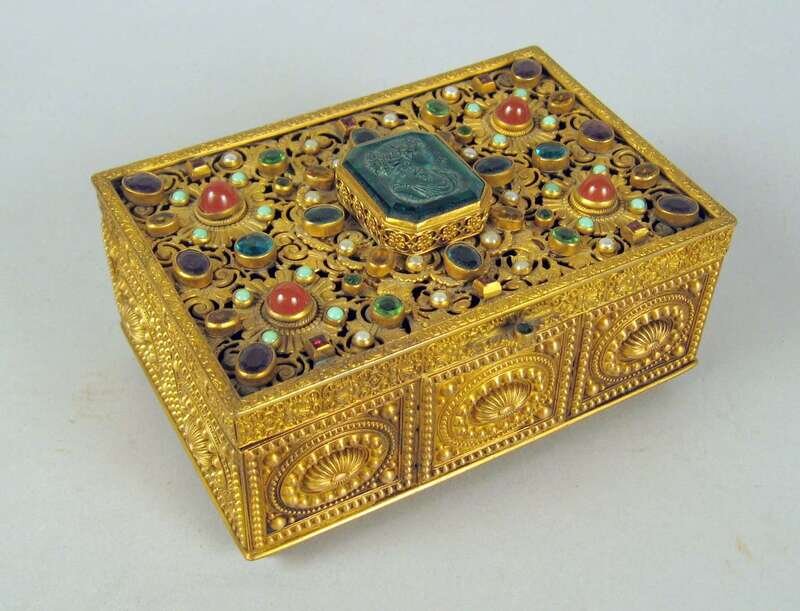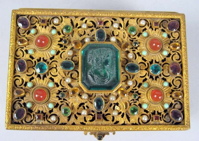 Austrian gilt metal & 'jewel' mounted trinket box 20th century