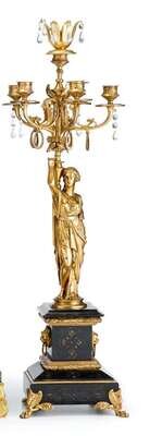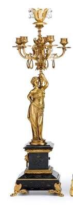 Pair of French gilt bronze and slate figural candelabra