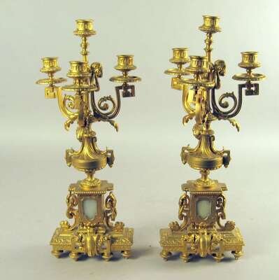 Pair of Louis XV style gilt metal and marble inset candelabra
