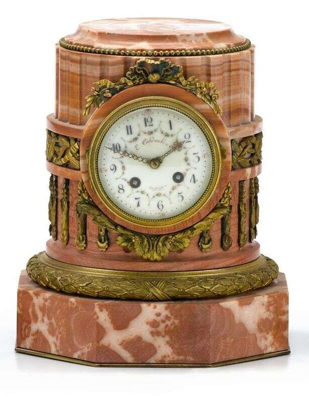 French gilt bronze mounted pink marble mantle clock retailed by j.e. caldwell, philadelphia