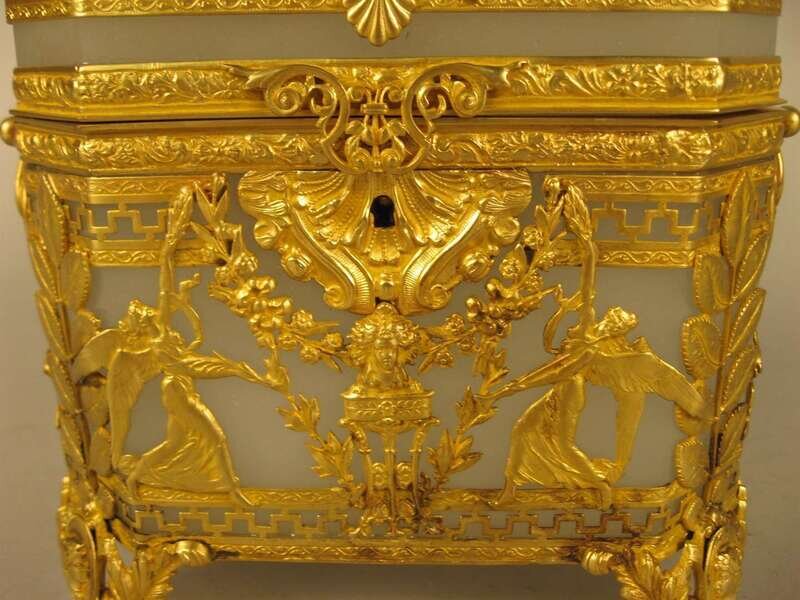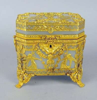 French neoclassical style opaline glass and gilt metal mounted box