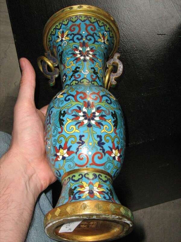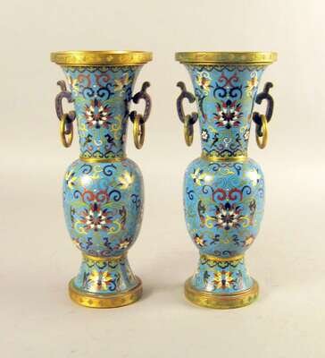 Pair of Chinese gilt metal mounted cloisonne vases qianlong mark, 20th century