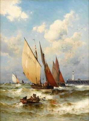 THEODORE WEBER (GERMAN 1838-1907) FISHING BOATS OFF THE QUAY