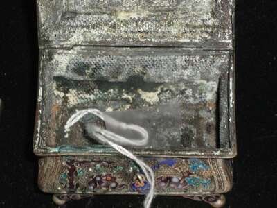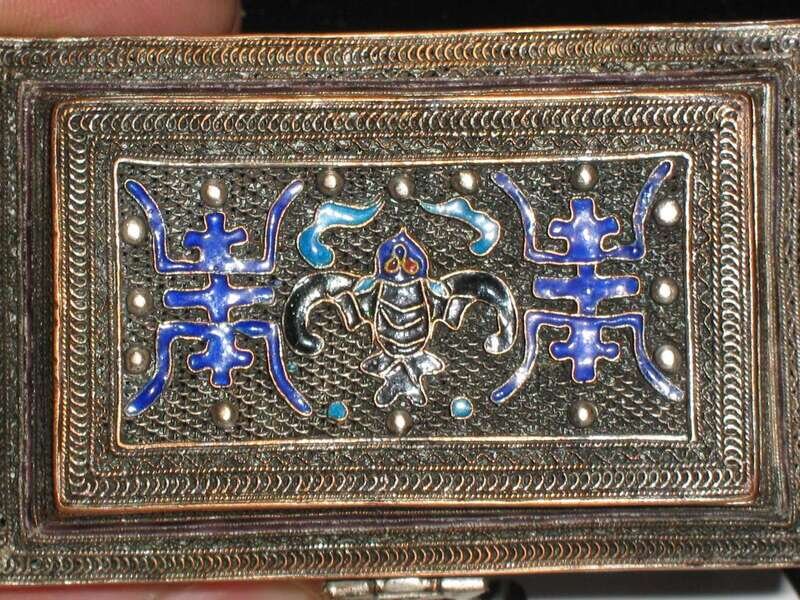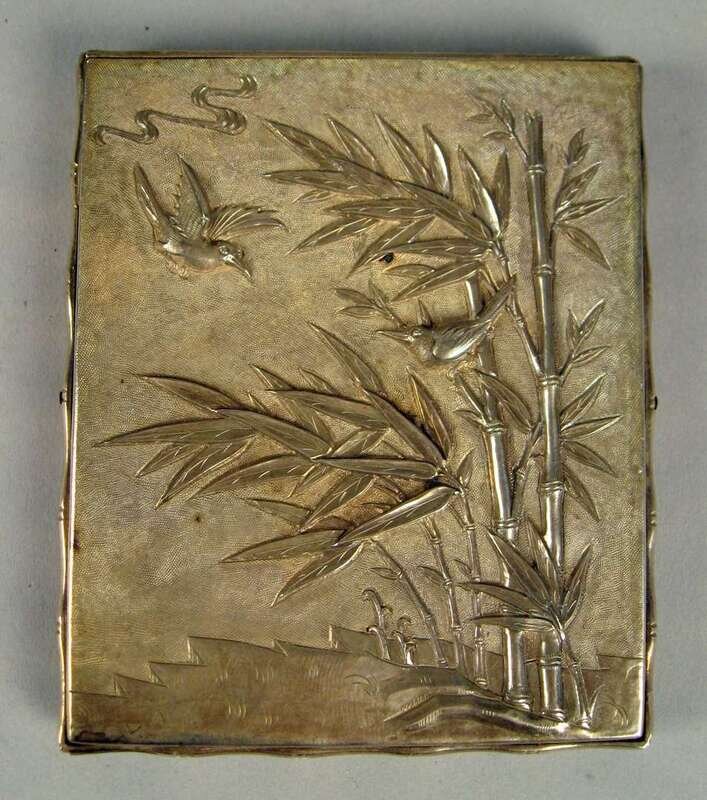 Cigarette case L: 3 3/4, W: 3 in., pill box H: 2 in.