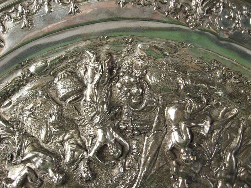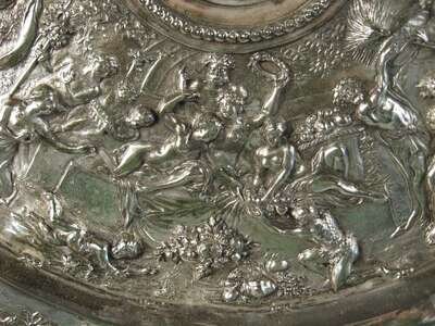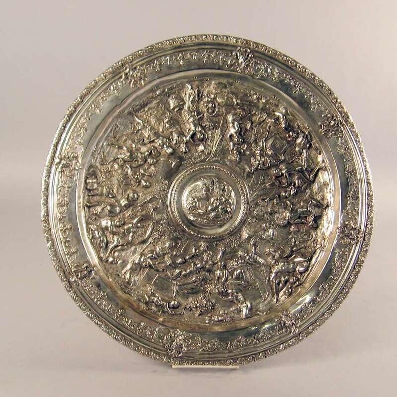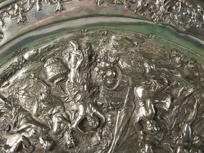 Continental silvered metal repousse plaque
