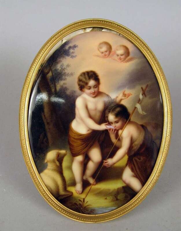 Oval, after Bartolome Esteban Murillo, in a gilt metal frame.