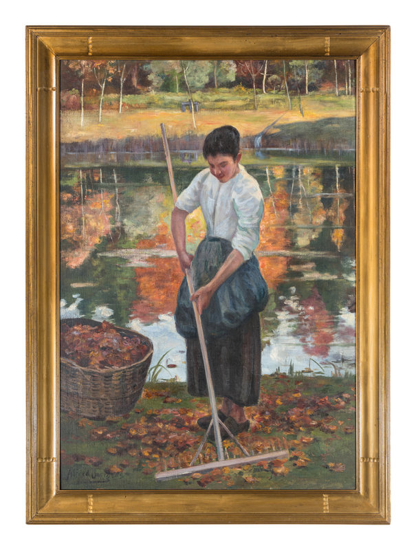 Woman Raking Leaves