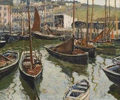 WALTER ELMER SCHOFIELD (AMERICAN 1867-1944) A BUSY CORNISH HARBOR