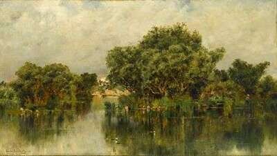 EMILE CHARLES LAMBINET (FRENCH 1815-1877) REFLECTIONS IN A RIVER