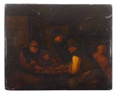 ATTRIBUTED TO EGBERT VAN HEEMSKERCK I (DUTCH 1634-1704) BOORS PLAYING CARDS IN A TAVERN