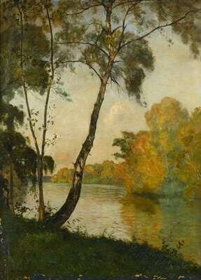 PAUL LECOMTE (FRENCH 1842-1920) TREES BY A RIVER
