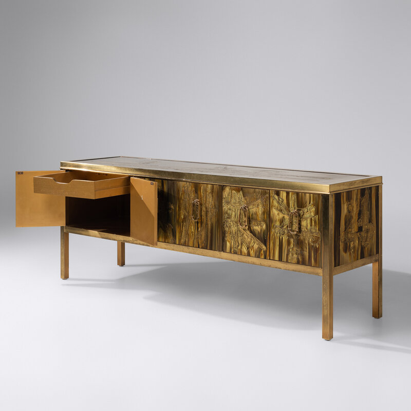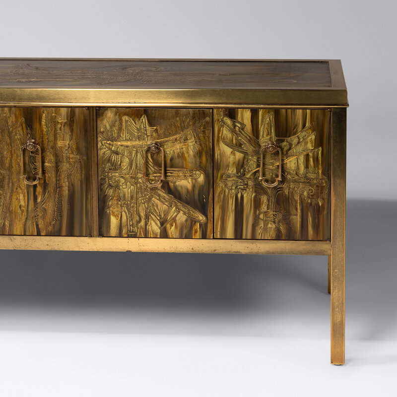 Acid-Etched Brass Sideboard, c. 1970