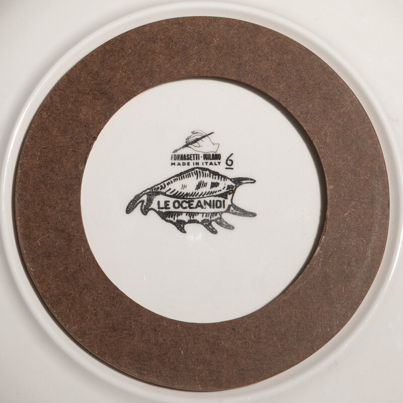 Four Le Oceanidi Plates, c. 1950 along with a Zucca Bowl with Lid, c. 1965