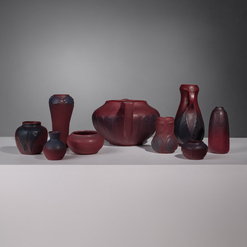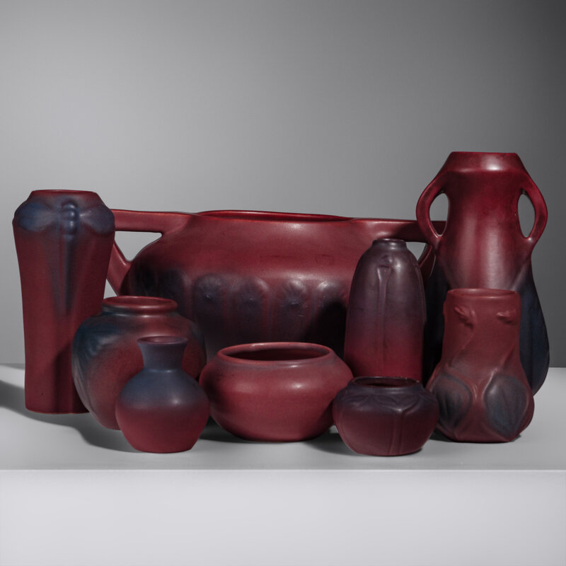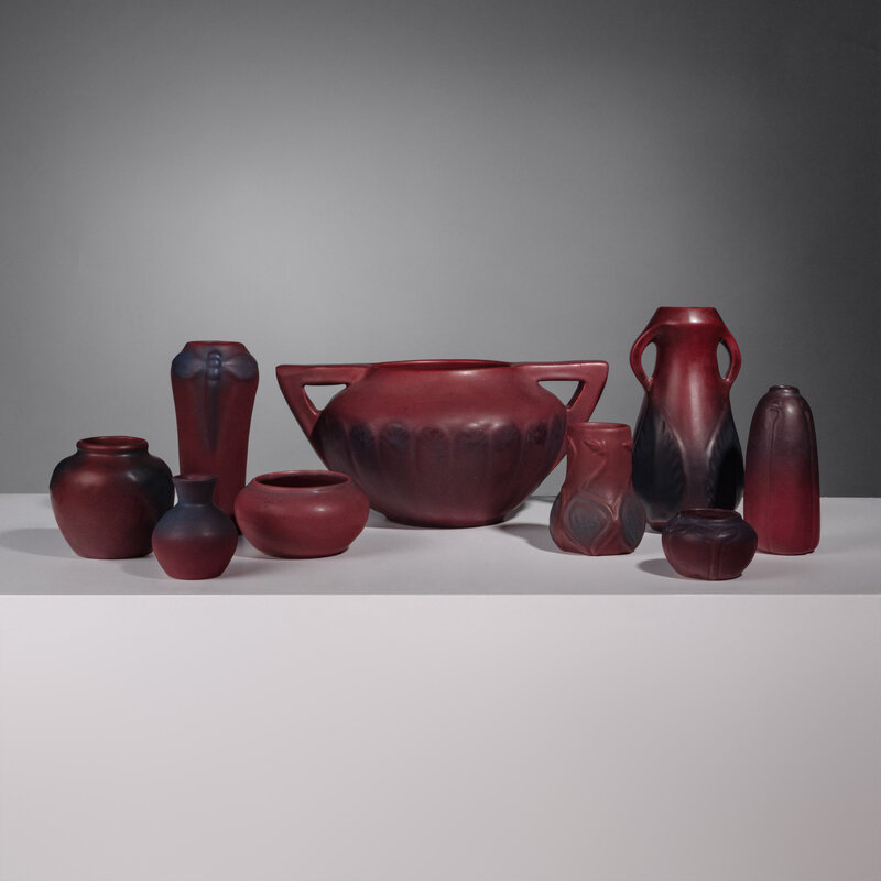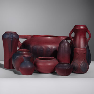 Group of Nine Mulberry Red Pottery Vases