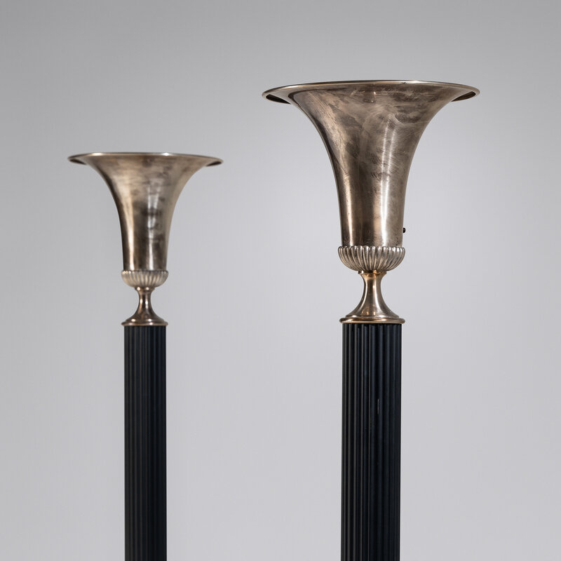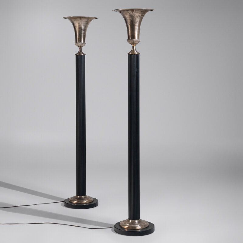 Pair of Silvered and Patinated Metal Torchère Floor Lamps