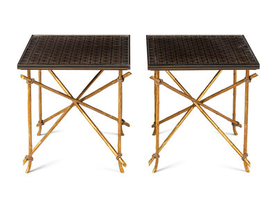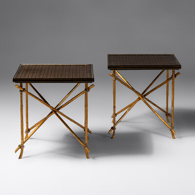 Pair of Gilt Metal and Laminate Alcott Occasional Tables