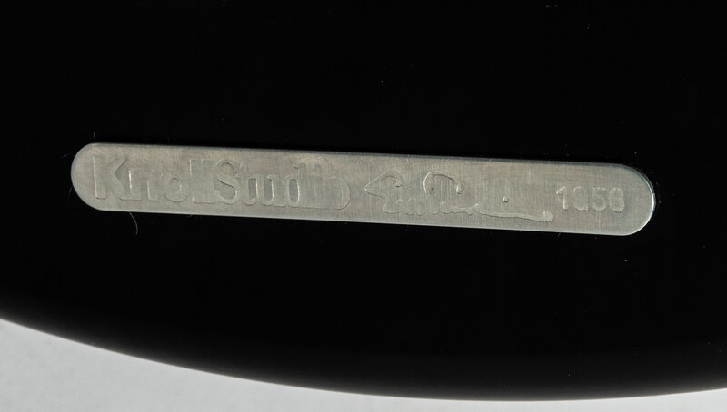 Knoll Studio metal tag on underside of base