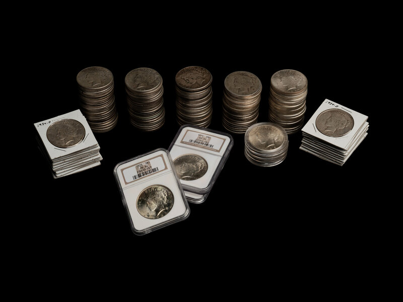 A Large Collection of One Hundred and Thirty-Nine Peace $1 Coins