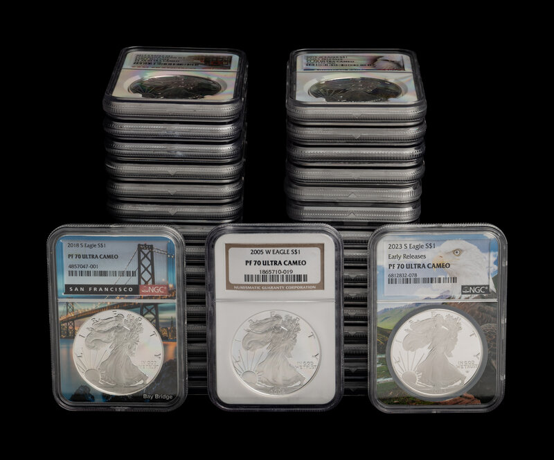A Collection of Thirty-Three NGC Graded PF70 Ultra Cameo Silver Eagle $1 Coins
