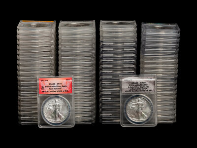 A Collection Seventy-Six of ANACS Graded MS70, SP70 and EU70 Silver Eagle $1 Coins