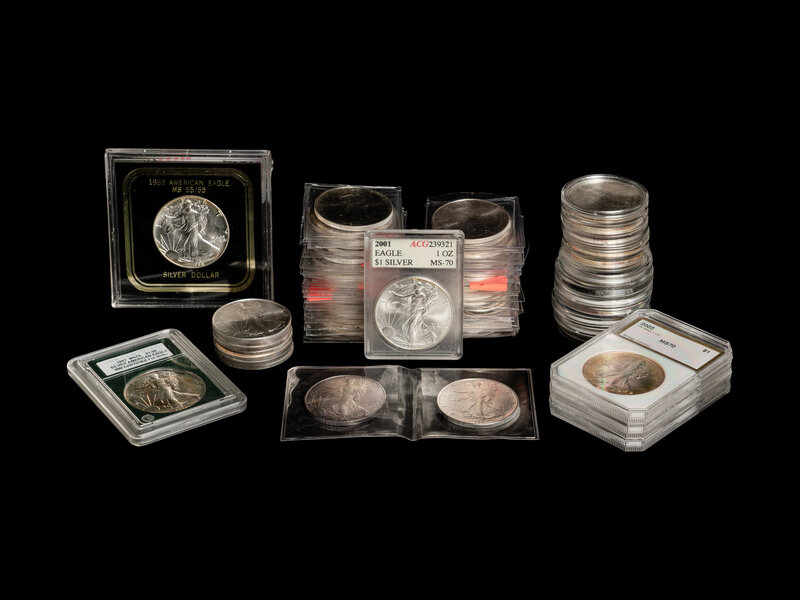 A Collection of Sixty-Eight Silver Eagle $1 Coins