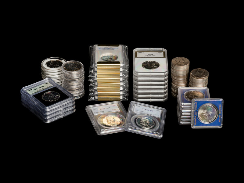 A Collection of One Hundred and Eight Benjamin Franklin 50c Proof and Mint Coins