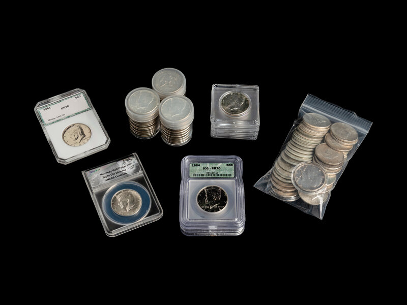 A Collection of One Hundred and Thirteen 1964 John F. Kennedy 50c Coins